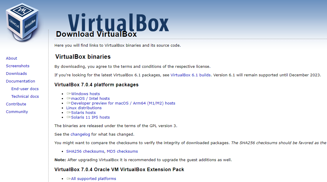 구글링으로 'Download VirtualBox' 를 검색하면 바로 다운 로드 받을 수 있다. 자신의 컴퓨터에 맞는걸 다운로드 하도록 하고 이제 부터 글의 내용은 'Windows hosts' 기반으로 작성하겠다.